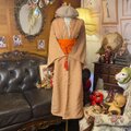 【 単衣着物リメイク セミロングワンピース/ドレス/洗える化繊 帯サッシュベルト 陽だまりのオレンジと時を結ぶ KW-1350】