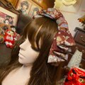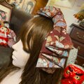 着物リメイク ハイカラおりぼん カチューシャ ヘアアクセサリー|和洋折衷 深みのあるくすみ赤をベースに、花模様 R-129