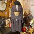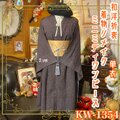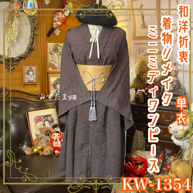 【 単衣着物リメイク ミニミディワンピース/ドレス/帯サッシュベルト くすみぶらうんの静寂 KW-1354】