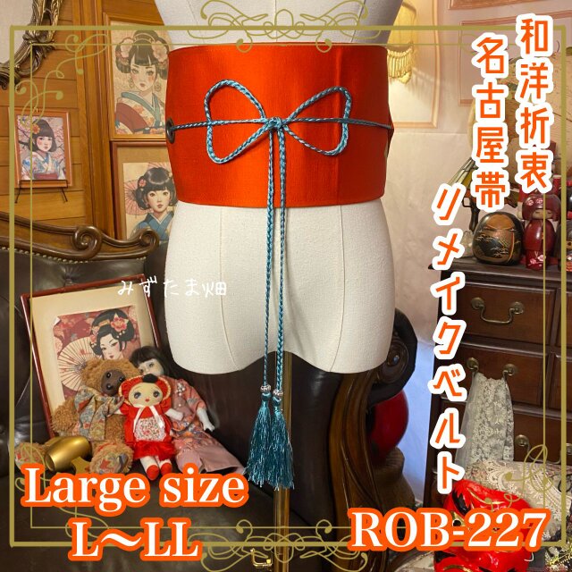 名古屋帯 リメイク サッシュベルト 飾り帯 和洋折衷 L〜LL対応 陽だまりのオレンジ ROB-227
