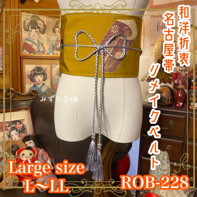 名古屋帯 リメイク サッシュベルト 飾り帯 和洋折衷 ハンドメイド レトロ 古着 L〜LL対応 陽だまりのからし ROB-228