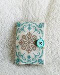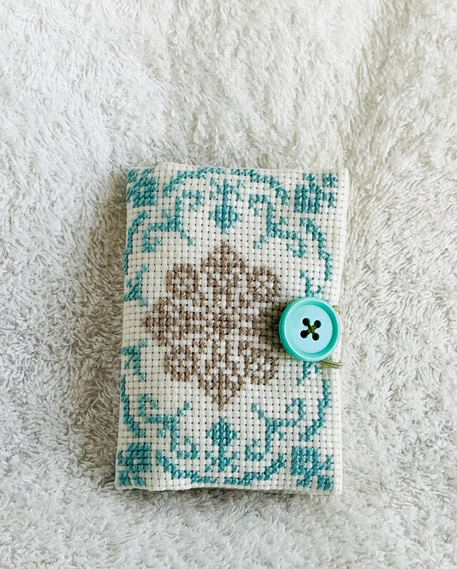 クロスステッチ用の布地に幾何学模様を刺繍したブック型のニードルケースです。
