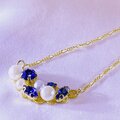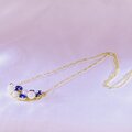 三日月の透かしパーツに華やかなパールとガラスストーンを付けて豪華に仕上げました