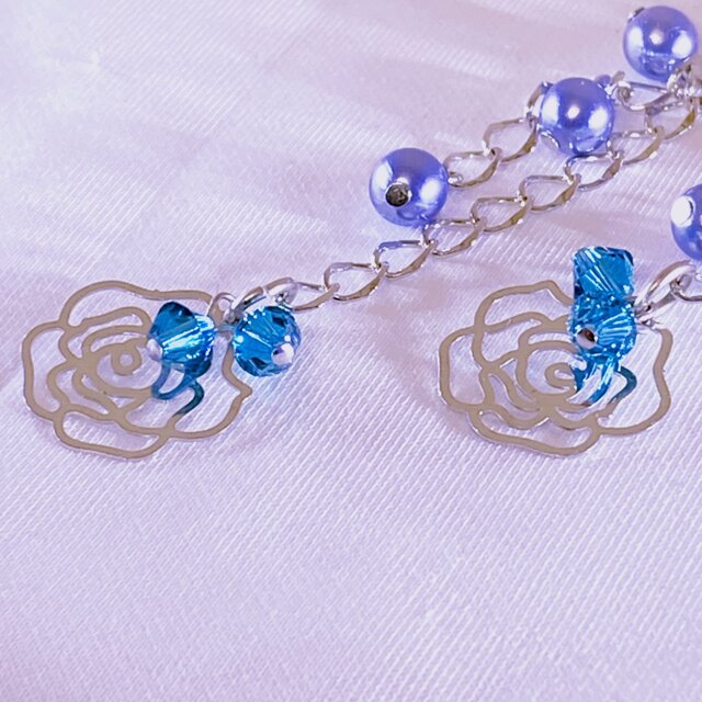 スワロフスキービーズと透かしローズのコラボレーションピアス♡