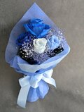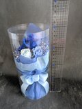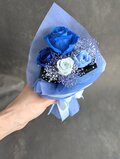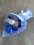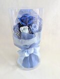 プリザーブドフラワー/青い薔薇とミニ薔薇とかすみ草の花束/そのまま飾れるクリアケース入り花束