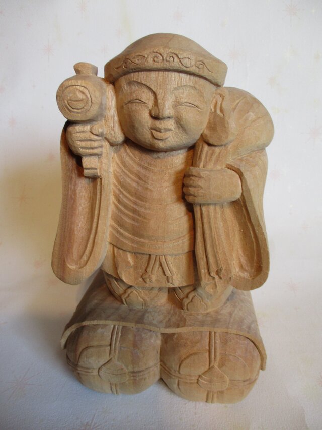 材質は楠を使用しています。大黒天は元々はシバ神の化身と言われ日本に伝来してからは七福神の一人となり、豊穣の本尊となりました。