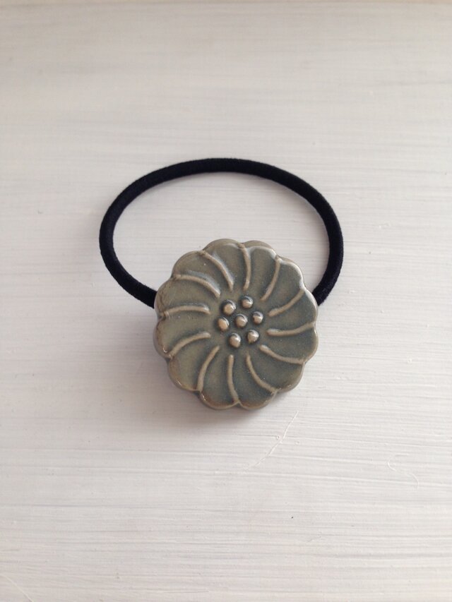 陶製のフラワーモチーフの可憐なヘアゴムです。