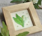 額縁 立体イラスト 壁飾り 壁かけ 置き物 写真たて フレーム アクセント 幸せ 幸運 母の日 季節飾り アメ 飴 つやつや 透明感 スズラン 鈴蘭 ガラス風 5月手描き パステル 大人 子供 小さめ かわいい 癒し 小振り 軽い 軽量 飾り ぷらばん ぷら板 とろける frame painting green white happy Lily of the valley