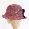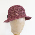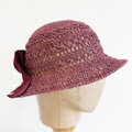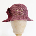 シルク100%の手染めのテープ糸を、麻のように加工した糸で編んだ帽子です。
