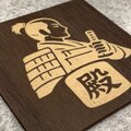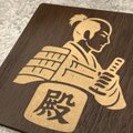 繊細な彫刻加工で「殿」の文字と武士の姿を表現。