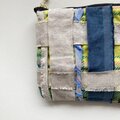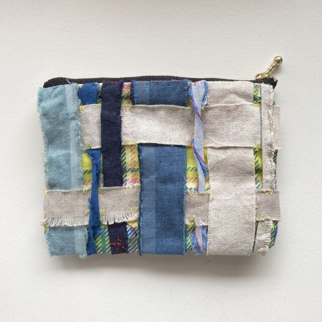 切りっぱなしの布をたくさん散りばめてポーチをつくりました。