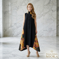 身幅をゆったりと取りつつ、落ち感のある正絹が描くラインは、体型を選ばず美しく見せてくれます。裾のカットに変化をつけたアシンメトリーなデザインが、歩くたびにドラマチックな表情を見せます。