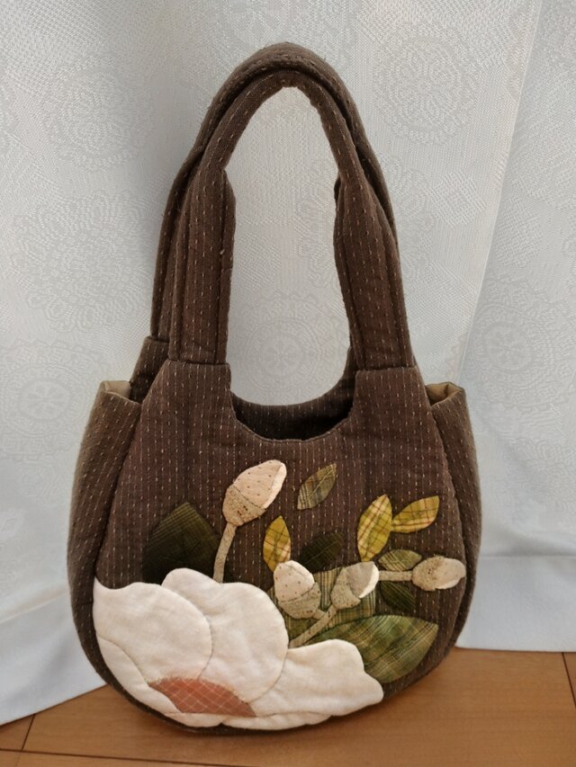 白牡丹の花をモチーフにしたグレー色のトートバッグです。