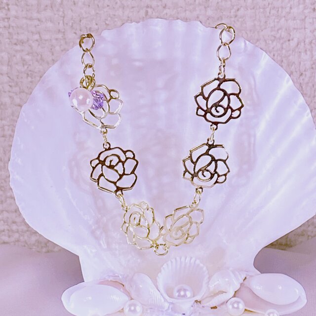 スワロフスキーと透かしローズのコラボレーションブレスレット♡
