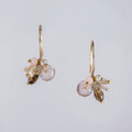 淡いピンクのローズクォーツを主役に、スモーキークォーツ、ピンクオパール、淡水パール、ラブラドライトを束ねたブーケのようなピアス。
