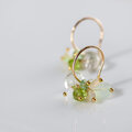 透明感のあるグリーンアメジストを主役に、ペリドット、グリーンカルセドニー、エメラルド、オパールを束ねた、みずみずしい森の雫のようなピアス。