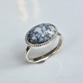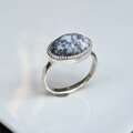 デンドリティック 瑪瑙 白黒の世界 5.8ctOVカボション ミル シルバーSV925リング