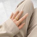 シンプルな装いに一点添えるだけで、コーディネートの主役になるリングです。