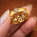 SV925 星モチーフ ワイドリング マットゴールド ヴィンテージ調 ブラッシュ加工 指輪 ギフト