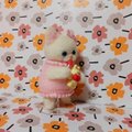 ハンドメイド フェルトドール 白猫の女の子 ピンクドレス ロリポップとウサギ付き