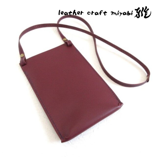 手縫い☆スマートにスマホを持ち歩こう♪《牛革》シンプル・スマホショルダー・フラットタイプ・076