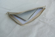 白のメッシュ(型押し)の革で作った小物入れです。