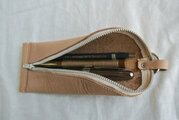 オーカー色の柔らかな革で作ったペンケースです。