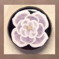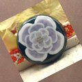 紫と手書きの花びらにゴールドの装飾が施されており、和装のアクセントにぴったりです