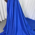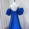 カラードレス ジュエルブルー ベアトップ 胸元フリル フリル袖 シルクタフタ ロングトレーン 優雅なシルエット 披露宴