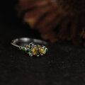 脇石はツァボライトガーネット、クロムダイオプサイド、イエローサファイアです。