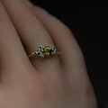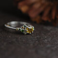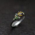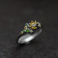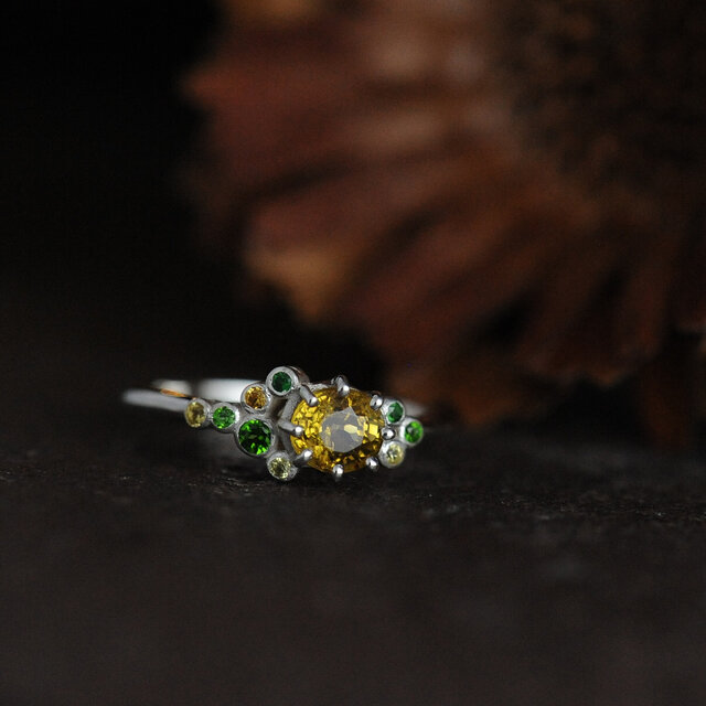 中石のイエローグロッシュラーガーネットからの着想で春らしいリングを作ろうと思いました。