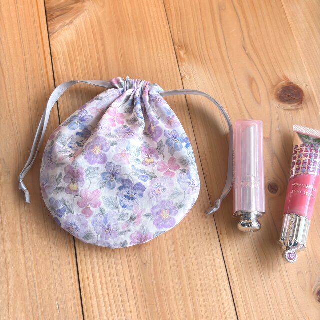 リバティ まるい巾着 15センチ <Think of Me>(シンクオブミー)パープル