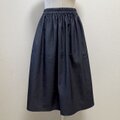 ハリのあるソフトデニム生地で製作した、シンプルなギャザースカート。