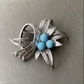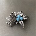 Vintage 70s-80s filigrana flower light blue stone brooch