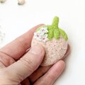 ころんと可愛い*くすみピンク苺と白いお花の羊毛フェルトブローチ|受注製作