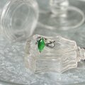 エメラルドグリーンのカットグラスが美しいシルバートーンリング。