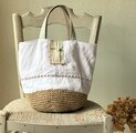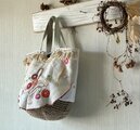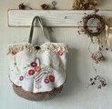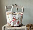 花かご刺繍かごバッグ*Franceantique*vintage*お出かけバッグ*手刺繍*オーガニックフリル