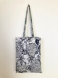 大きないちご柄のグリーンとモノトーンを組み合わせたアフリカンプリントのトートバッグ(M)。