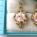 1968年にアメリカのカリフォルニア州にて設立され、バチカンライブラリーコレクション等のヴィクトリア朝のジュエリーを製作している1928 Jewelry Companyのピンクの薔薇のポーセリンがあしらわれたヴィクトリアデザインのヴィンテージピアスです。
