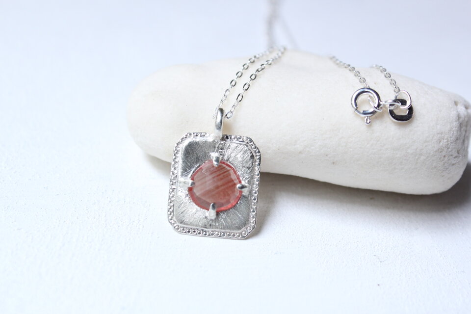 ローズカットされたラフカットのアデンシンの石をスクエアのプレートに石留しました。