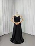 パーティードレス キャミソール ブラック 高級イタリアサテン 細見えシルエット ファスナー 二次会
