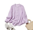 きちんと感と抜け感を両立。大人の一年中着回しアイテム リネンシャツ 長袖シャツブラウス ピンクパープル 260405-4