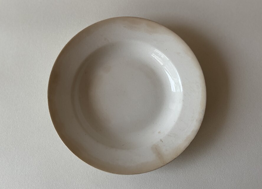 名窯、クレイユモントローより、シャビーな風合いの白プレート(深皿)が届きました。