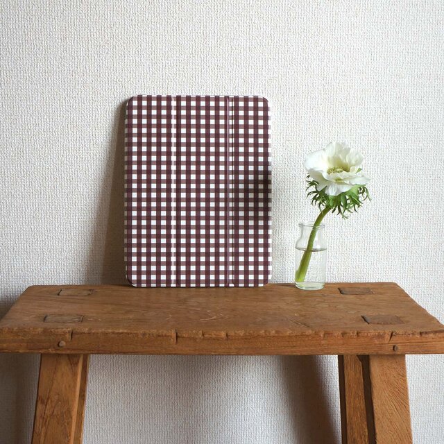 「 tokimeki gingham check( カカオ )」< iPadケース >【手帳型ソフトタイプ】