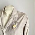 繊細なボタニカルフラワー模様のUSAヴィンテージブローチ。陶器の美しさが引き立つ、シンプルかつクラシカルなデザインが魅力的。石座の上部には「バチカン」が付いており、チェーンを通すとネックレスとしてもお使いいただけます。存在感がありスタイリングを華やかに彩ってくれます。