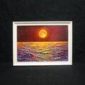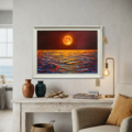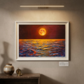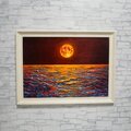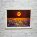 「豊穣のルナ・オーシャン」は、燃えるようなオレンジの満月が波打つ大海原を黄金色に染め上げる、美しさと力強さを兼ね備えた特別な油絵作品です。このアートは、月の引力が海を動かすように、見る者の運命をポジティブな方向へと導くエネルギーを込めて描き上げられており、心を奪われる独自の存在感を放っています。