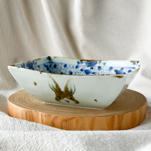 チコロット❤️すべて手描き❤️染付け❤️角小鉢❤️Mサイズ❤️一品盛り❤️うさぎ