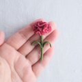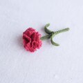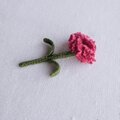 母の日に かぎ針で編んだブローチ ほっこりコサージュ カーネーション 刺繍糸 赤紫ピンク ラズベリーピンク