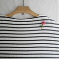 繊細な生地、ブラウスや薄手シャツ、Tシャツなどに着ける場合は、糸飛びや、穴が残ってしまうことがありますので、十分ご注意下さいませ。