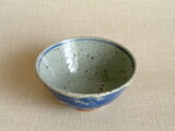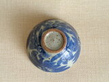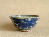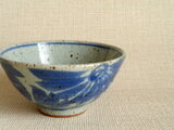 この作品は、信楽の土を用い、ろくろで成形した盌に呉須で花文を味わい深く丁寧に手描きしています。作品の表面に見られる黒点は、粗めの土を使用しているため、土に含まれる鉄分が焼成によって現れたものです。土そのものの風合いとしてお楽しみ下さい。